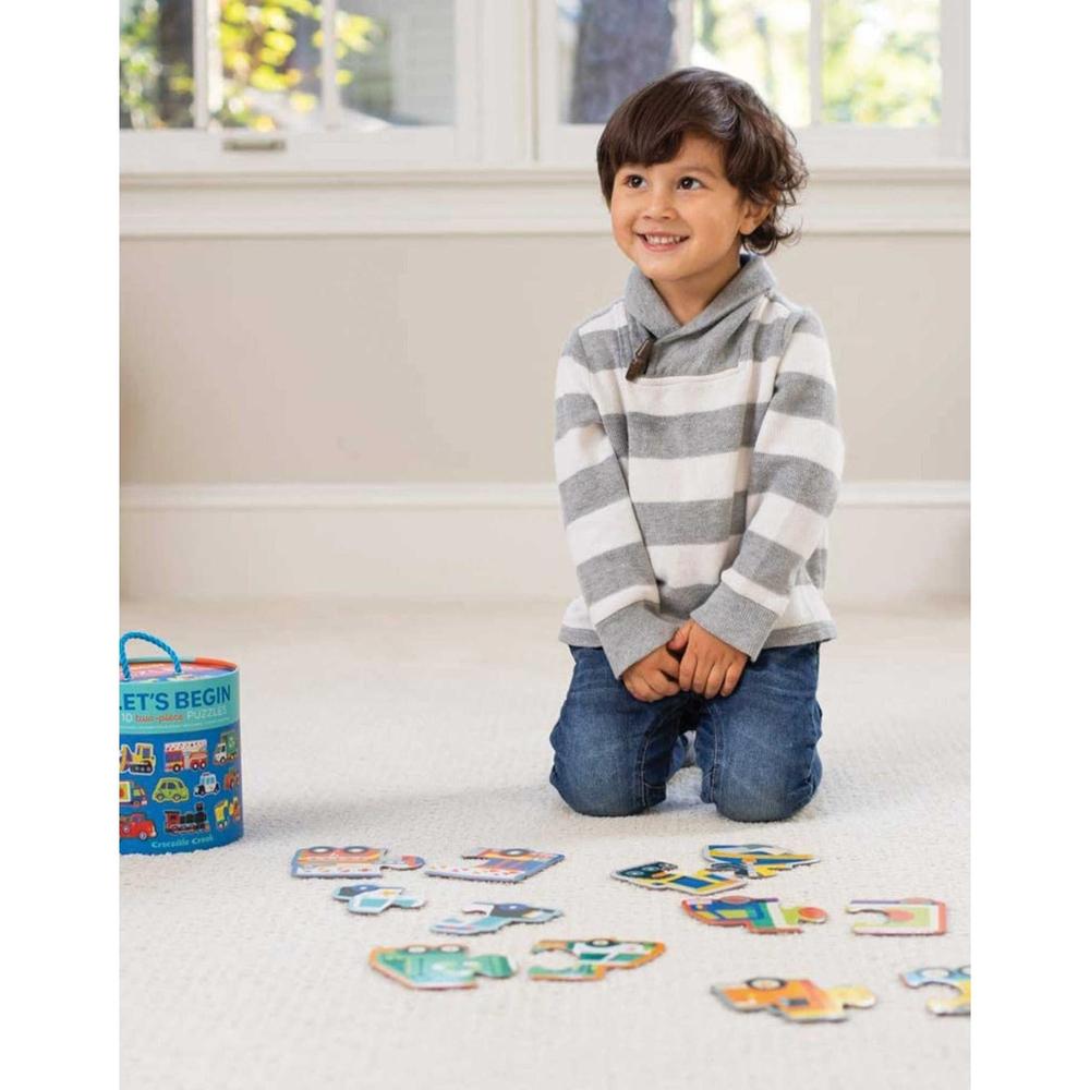 Crocodile Creek's "Let's Begin" puzzles are perfect for a toddler's very first learning experience! Each puzzle set is cleverly packaged in a sturdy box with rope handle.