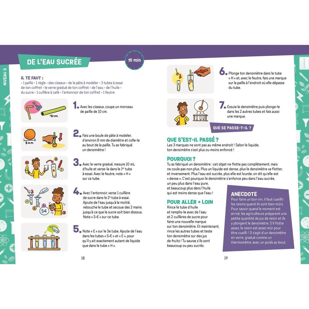 Learn all about science and the world around you with the booklet's experiments and accessories. On every page, you'll discover scientific anecdotes and go further in your reasoning!