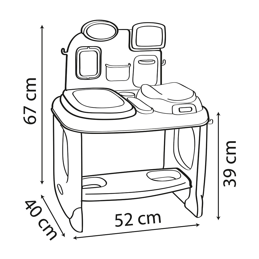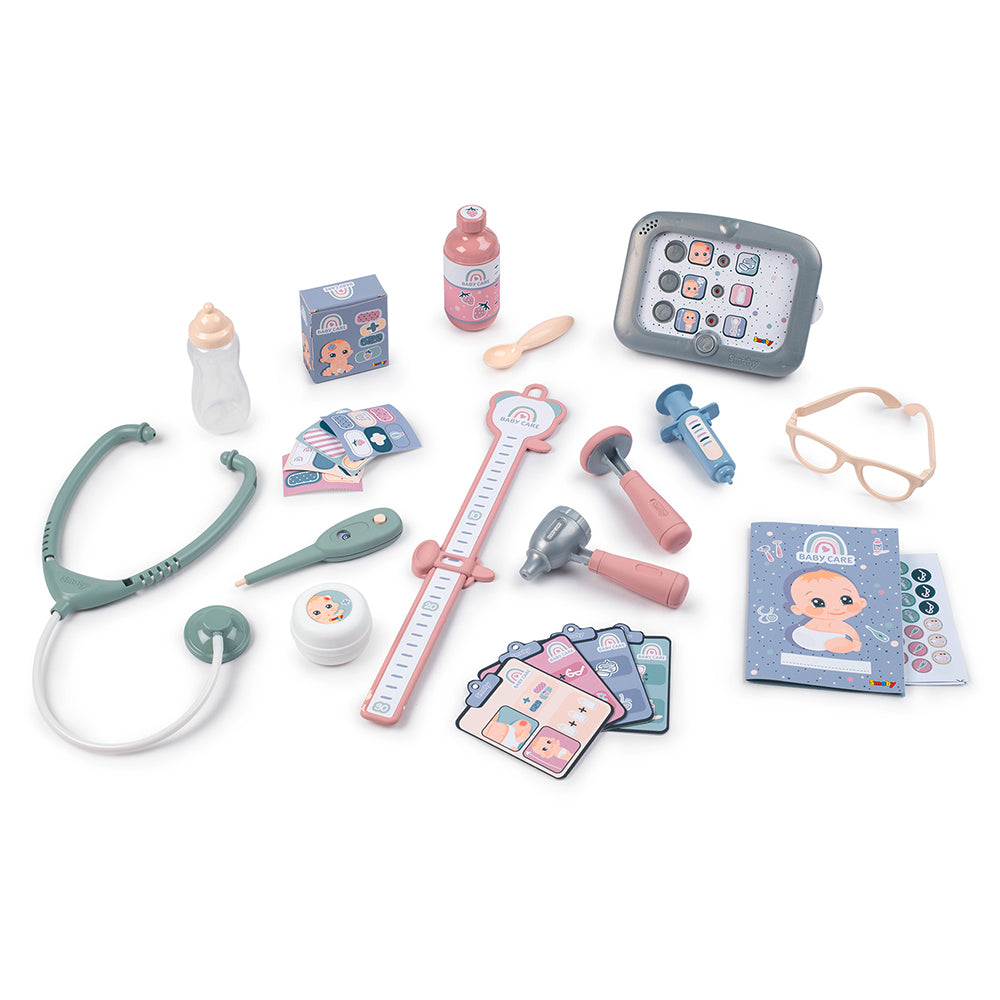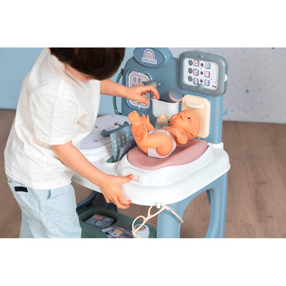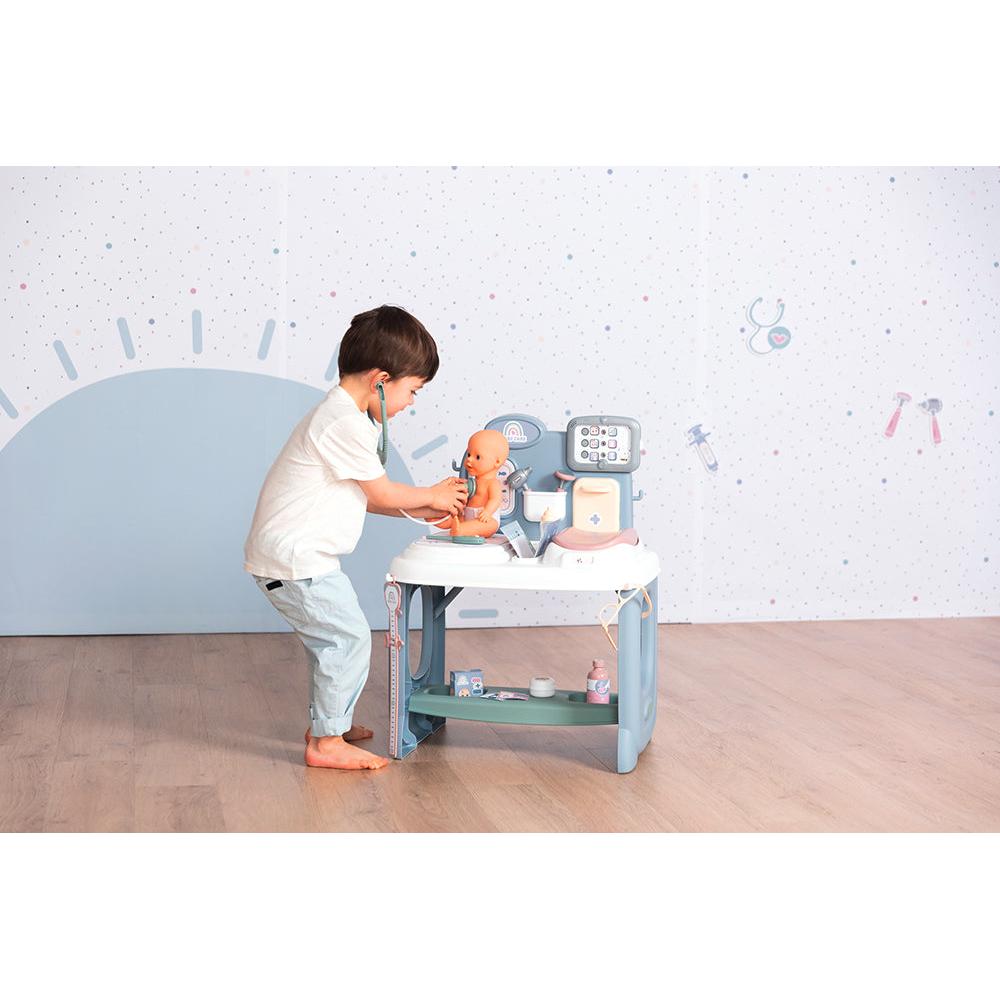 This doll center features a baby scale, first-aid kit, stethoscope and much more. Your budding doctor can use the electronic tablet to consult the doll's medical history, take measurements with the measuring ruler and record the results in the supplied health booklet.