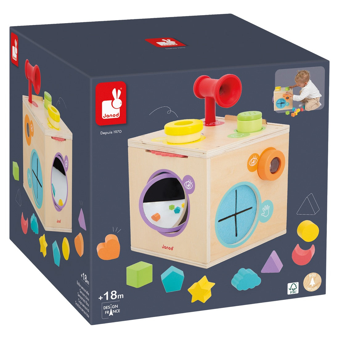 - Early-learning toy in FSC wood.