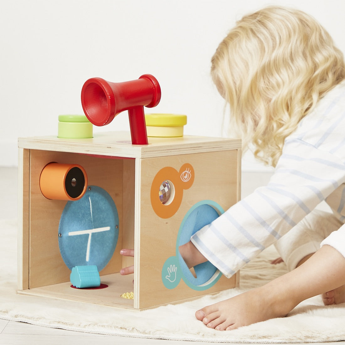 Discover the senses! Here's a wonderful sensory box that helps develop 4 of the 5 senses (smell, hearing, touch and sight) through fun activities to share with your child.
