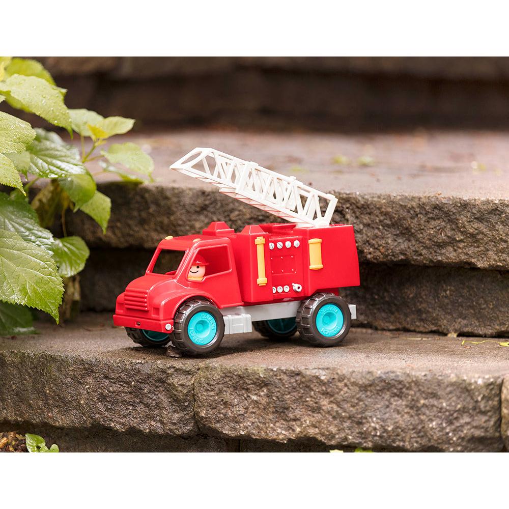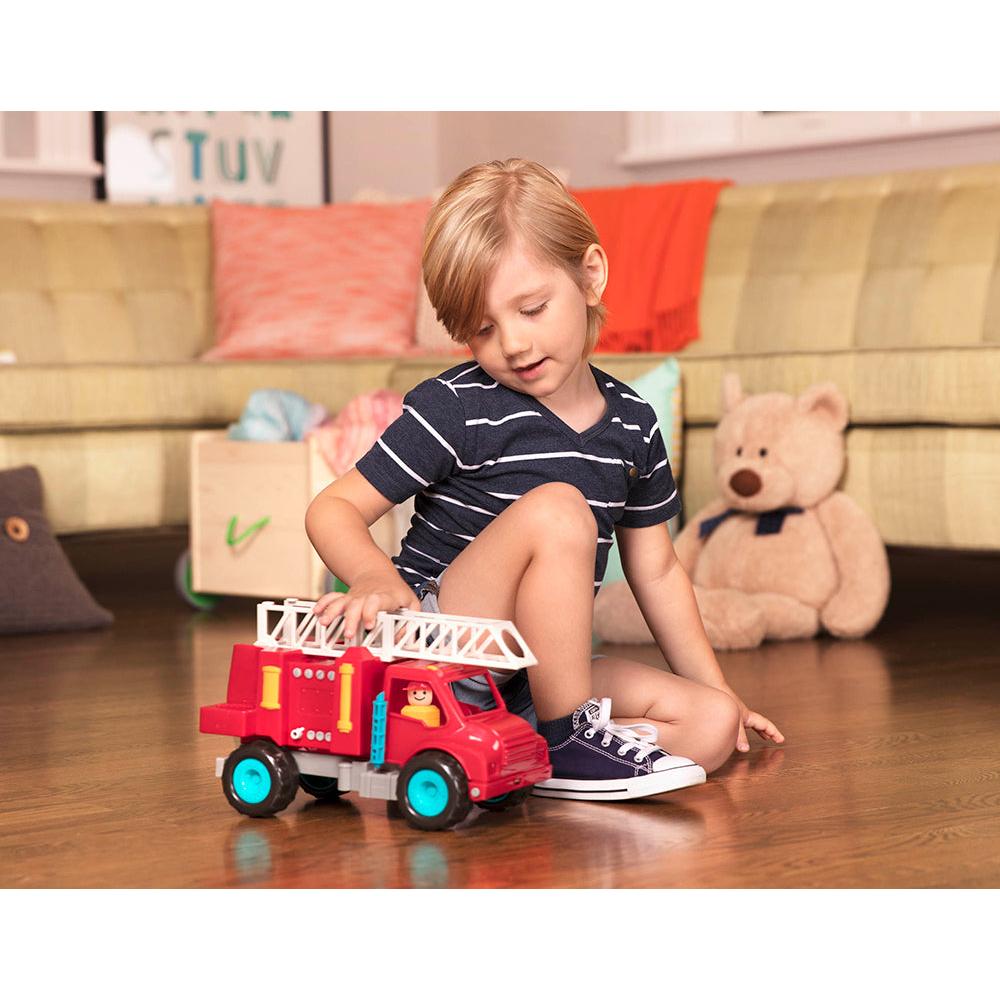 Easy to grasp and drive, this toy truck for toddlers features moving, functional parts, perfect for encouraging imaginative play. Open and check the engine, or extend the ladder to reach high fires! It's also accompanied by two brave firefighters who make sure everything runs smoothly.
