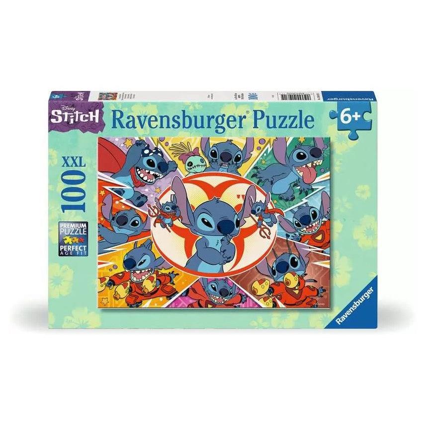 Your child is sure to love this 100-piece "Stitch" puzzle featuring the lovable troublemaker from Disney's Lilo and Stitch films on the loose, wreaking havoc!