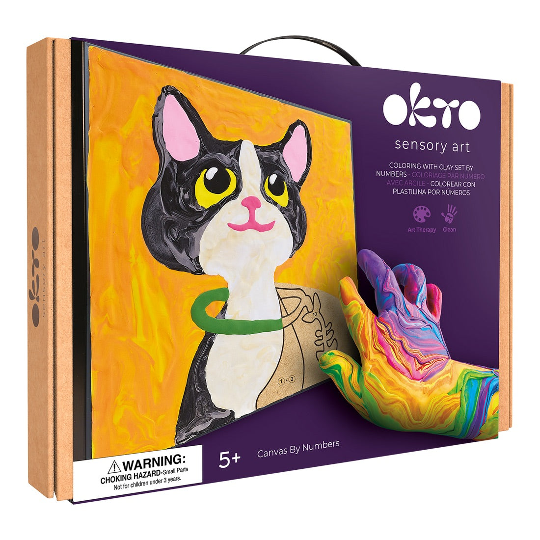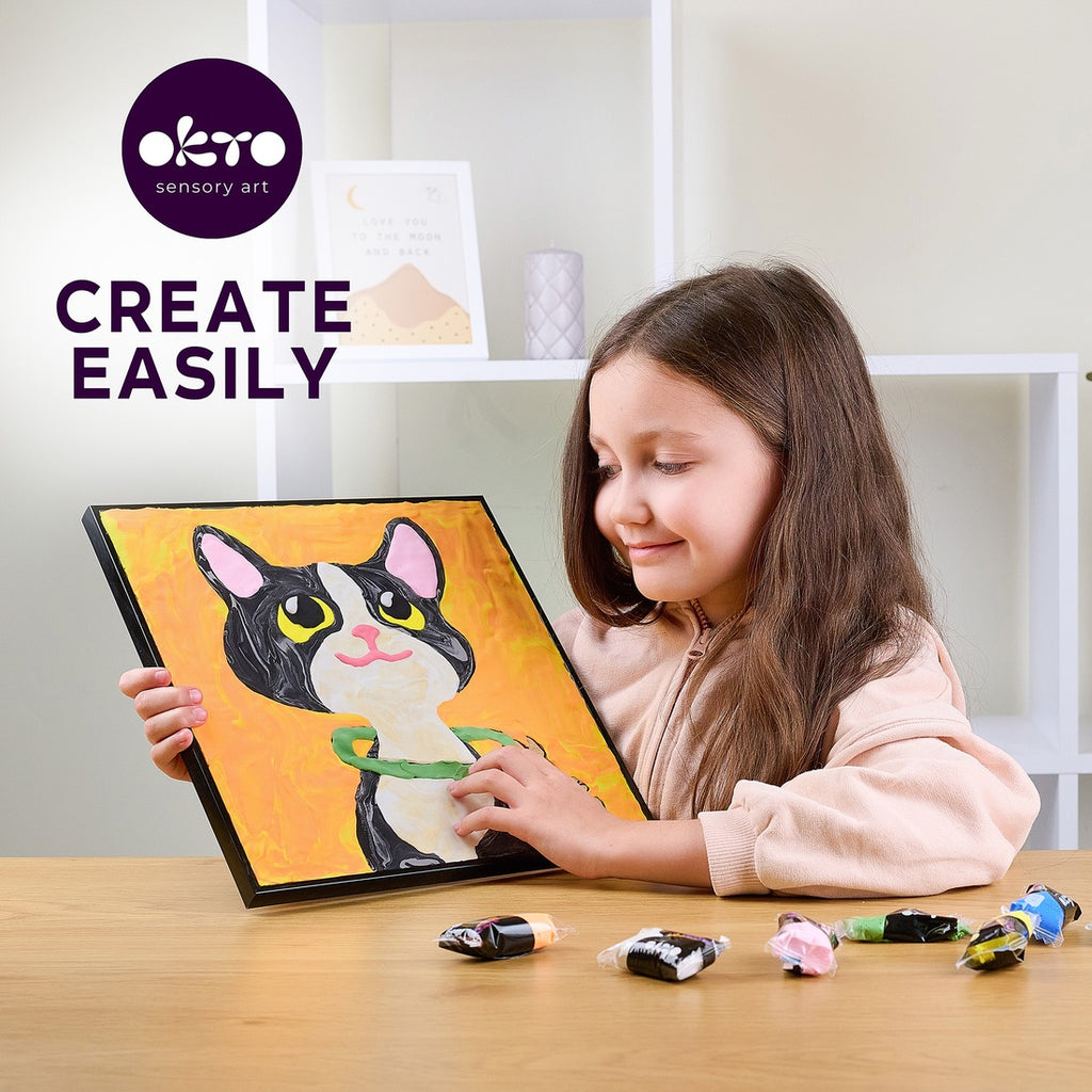 The OKTO "Cat" paint-by-numbers kit is a creative activity that combines relaxation and sensory development.