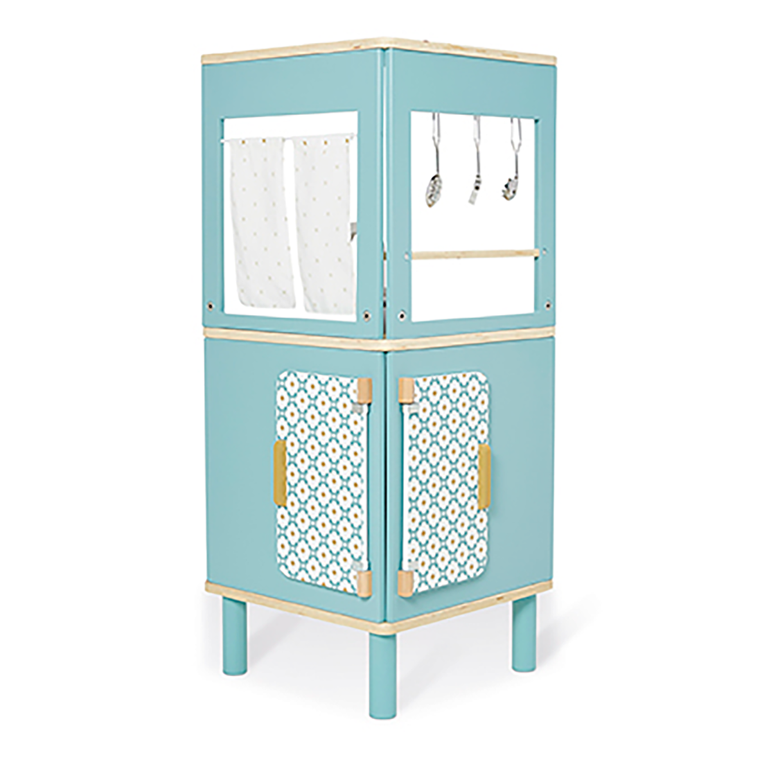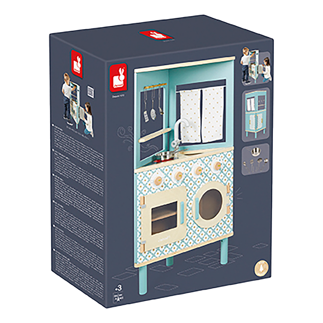 TRIO kitchen designed for small spaces. Its unique, clever shape allows children to play all around it, while parents can easily find a place for it in a corner! Attractive cement-tile motifs and soft colors, essential for keeping up with current trends!