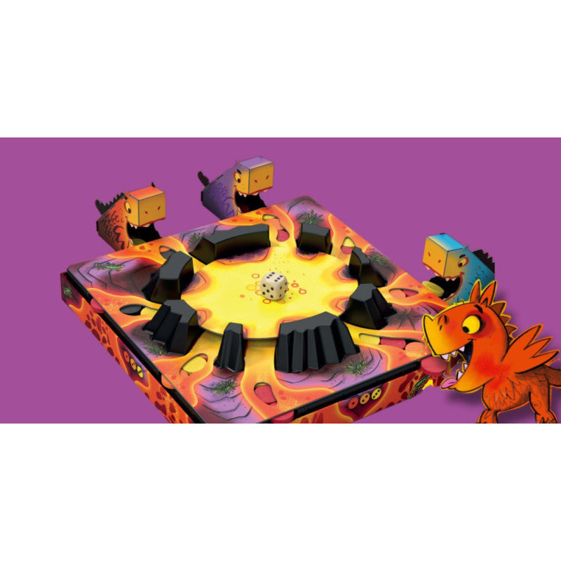 Featuring a three-dimensional board with lava sprays flowing from the volcano, you'll need to position yourself carefully to ensure the lava reaches your dragon's mouth!