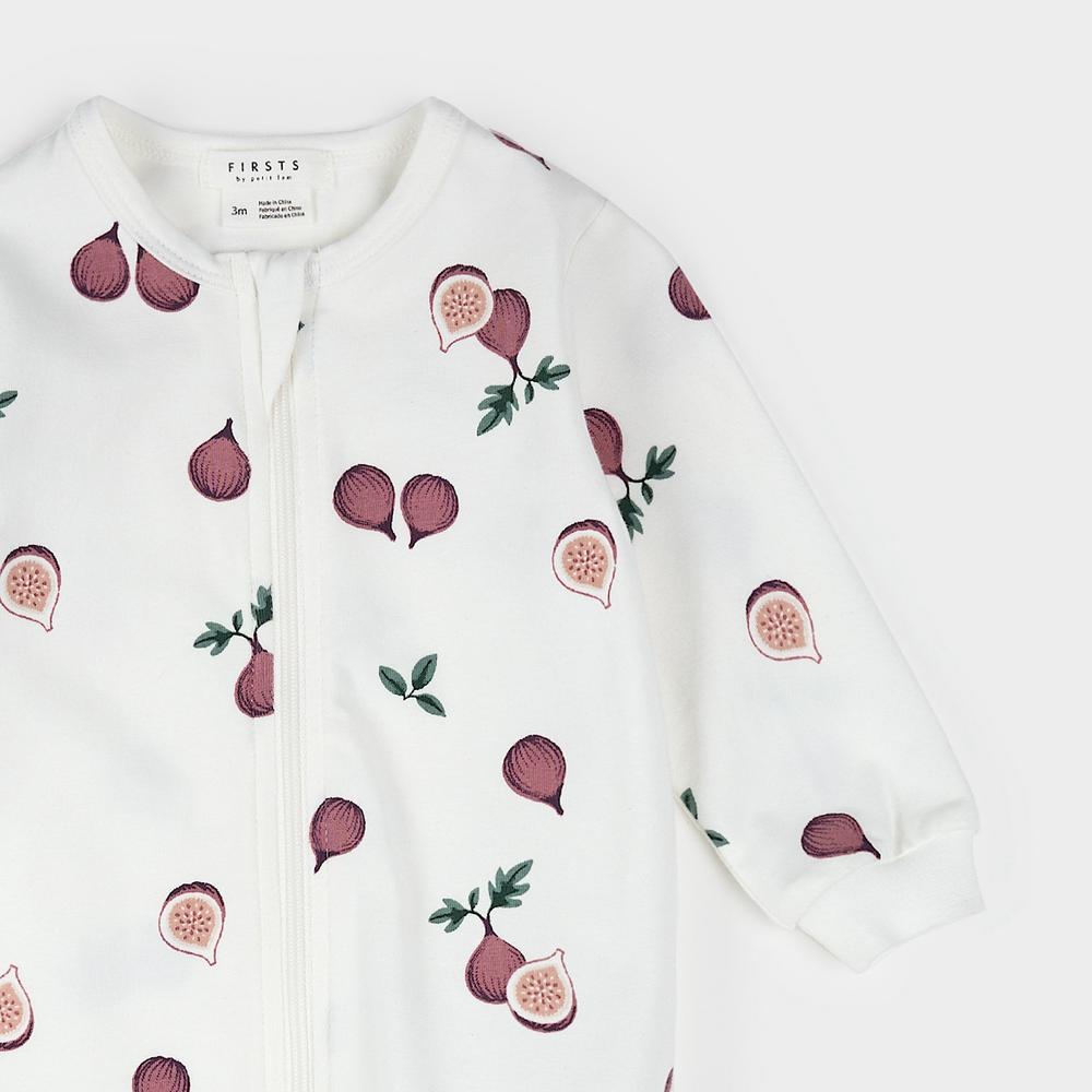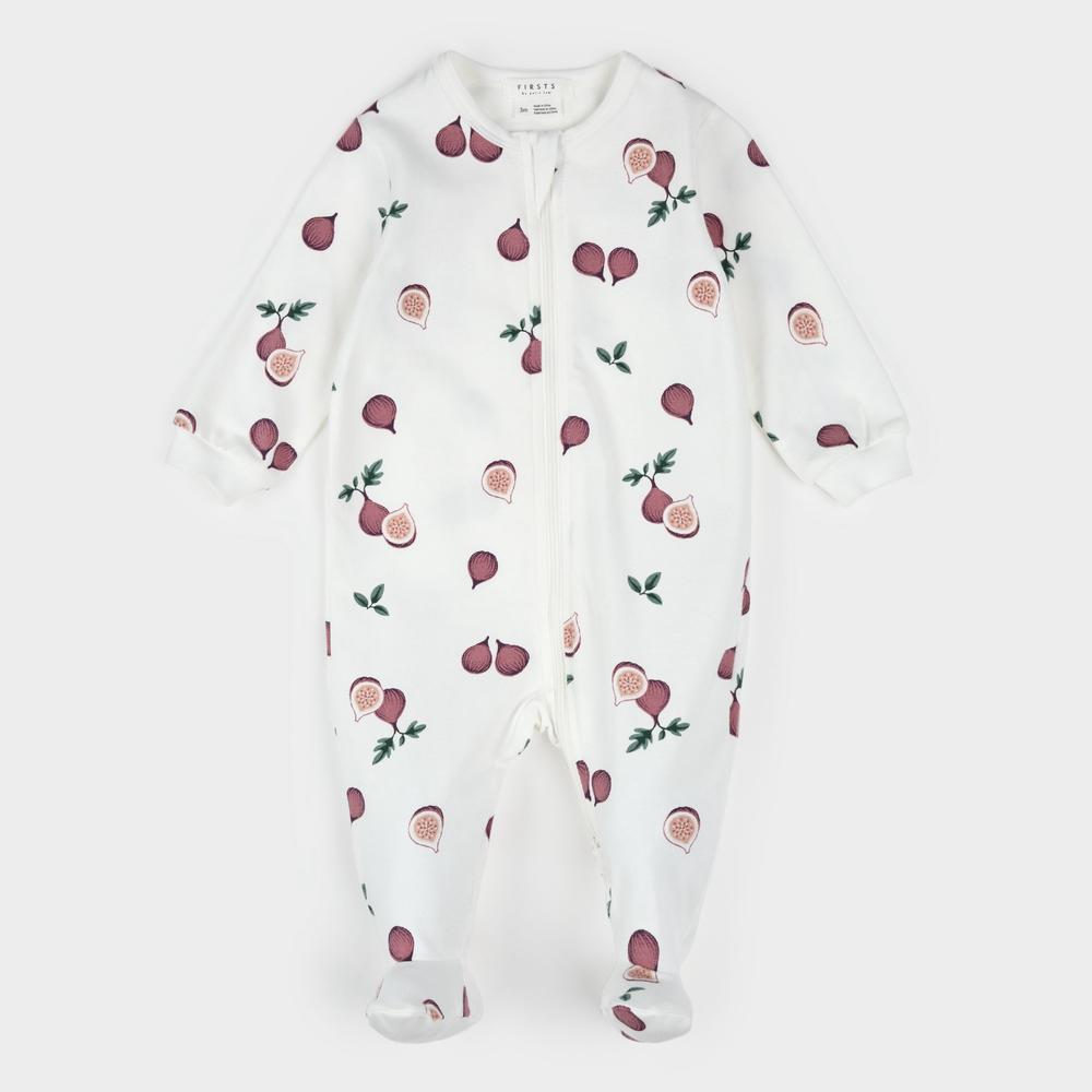 Soft, comfortable pajamas designed for new parents and their babies. Made from soft organic cotton jersey, these pajamas feature built-in feet, ribbed cuffs and a two-way zipper for easy diaper changes. With its delicate floral print, it's perfect for late-summer babies.