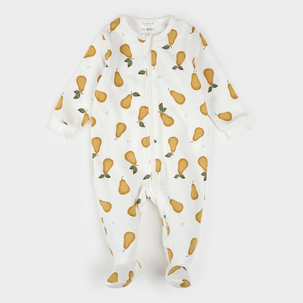 Soft, comfortable pajamas designed for new parents and their babies. Made from soft organic cotton jersey, these pajamas feature built-in feet, ribbed cuffs and a two-way zipper for easy diaper changes. With its delicate floral print, it's perfect for late-summer babies.