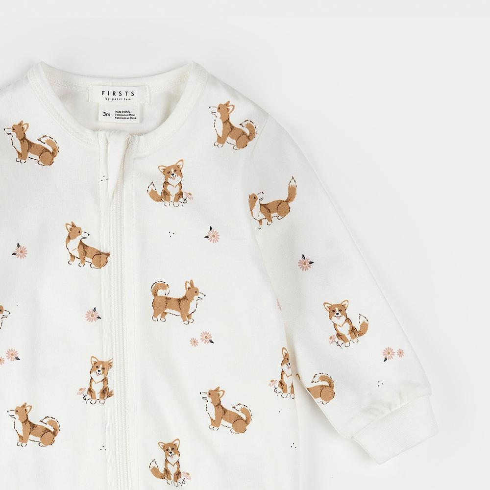 With its integrated feet and ribbed cuffs, this unique piece fits snugly, protecting little toes while leaving little hands free to discover new things.