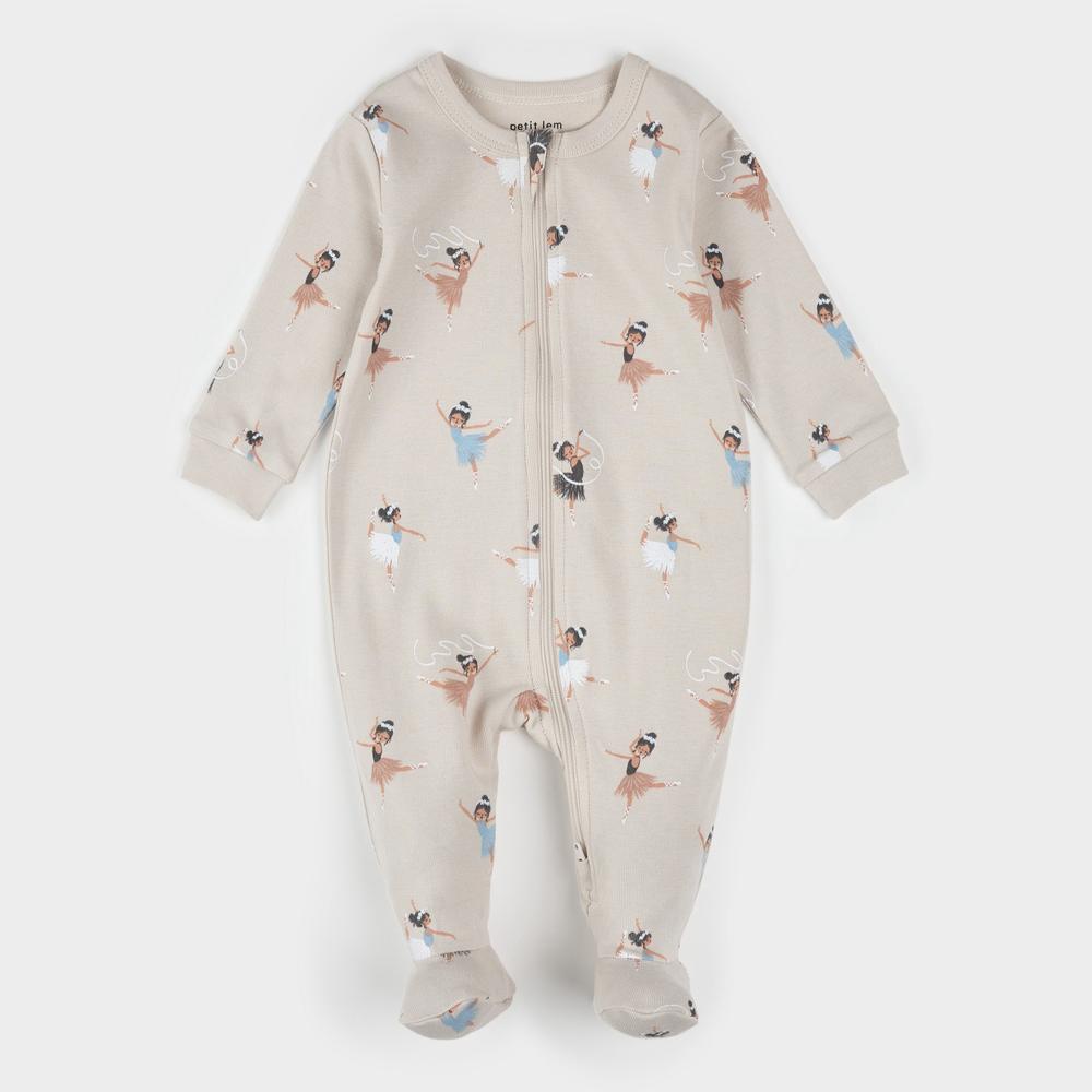 Ballerina-print cream sleeper (0-12M)