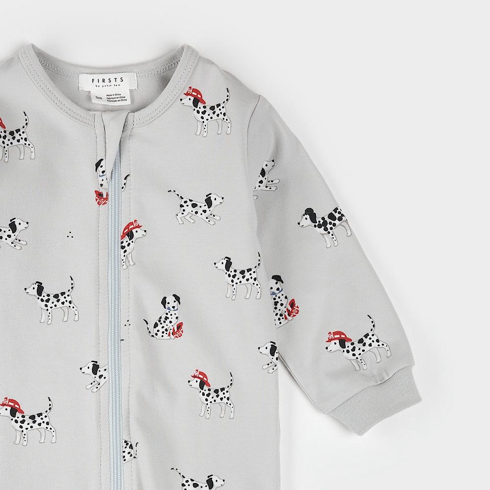 Designed for little heroes in the making and their trusty four-legged sidekicks, this footed sleeper features an adorable firefighter Dalmatian print.