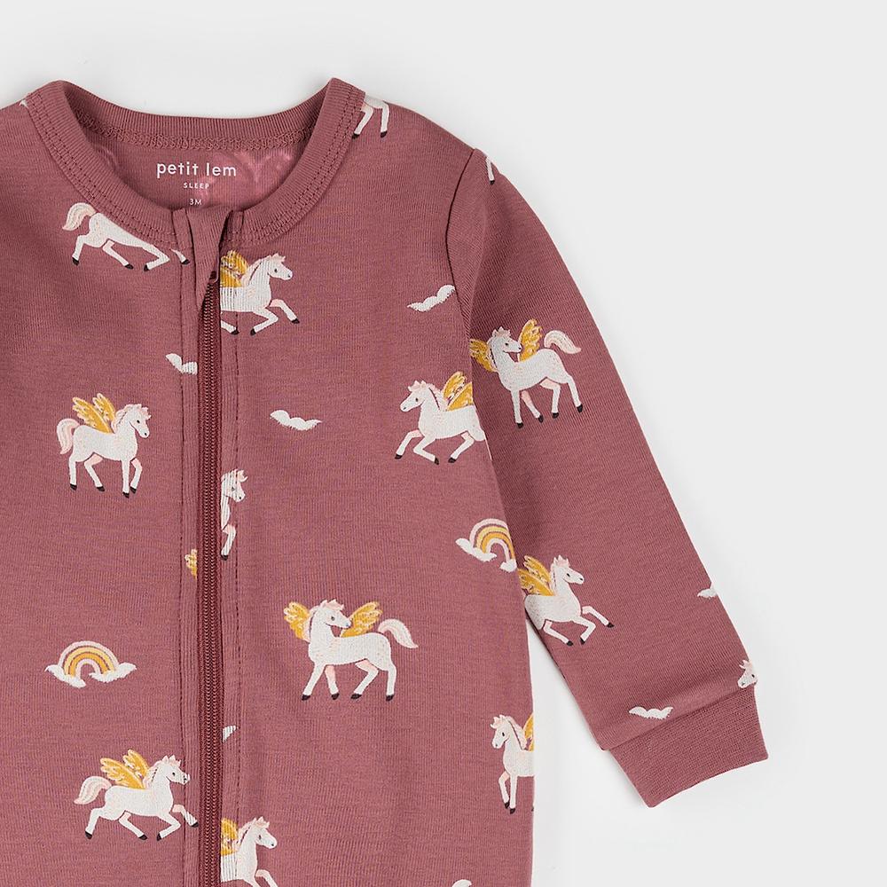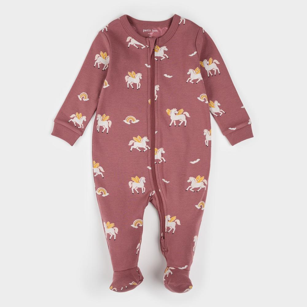 Soft, comfortable pajamas designed for new parents and their babies. Made from soft organic cotton jersey, these pajamas feature built-in feet, ribbed cuffs and a two-way zipper for easy diaper changes. With its delicate floral print, it's perfect for late-summer babies.