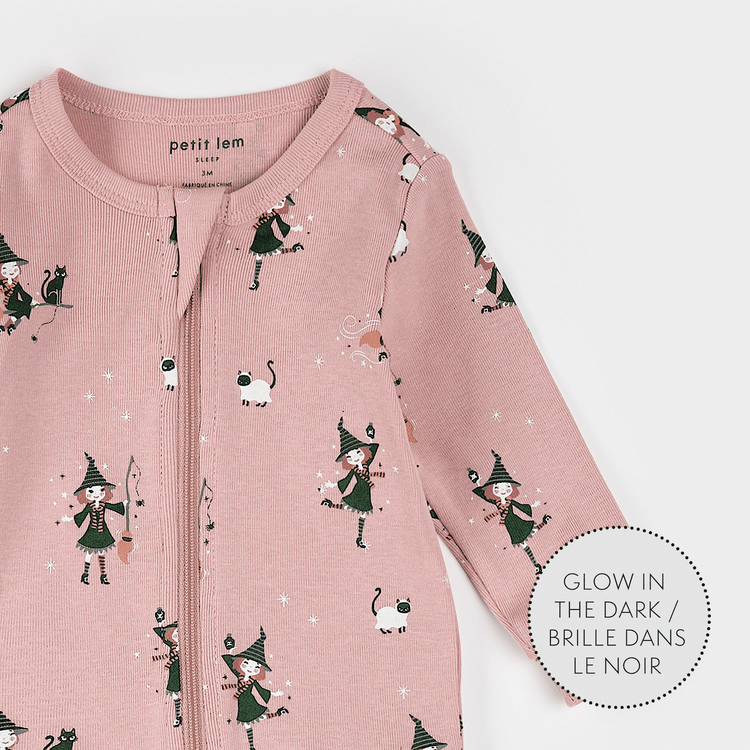 Soft against the skin, with integrated feet and ribbed cuffs, it keeps little witches warm all night long. Its glow-in-the-dark pattern adds a touch of magic to the bedtime routine.