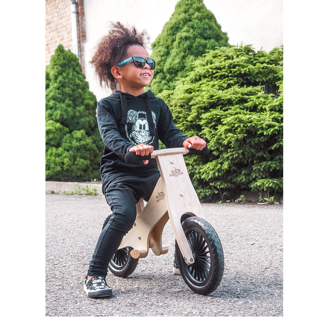 With a low frame, cleverly positioned handlebars with non-toxic grips and guards, an adjustable seat height of 30 to 38 centimeters, and footrests for added stability, little ones are guaranteed a comfortable transition to a pedal bike!