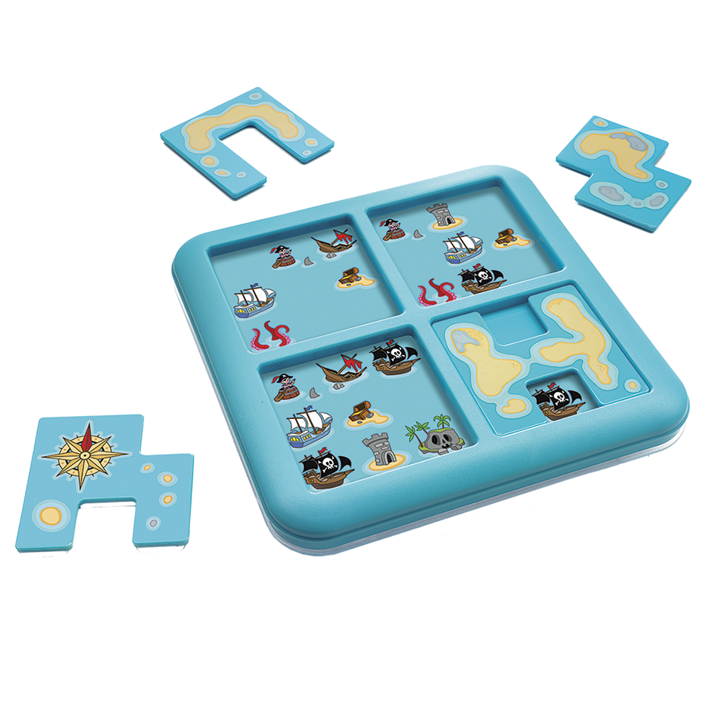 Discover the exciting Pirates Hide & Seek game, now in a compact version with 60 new challenges, different illustrations, 3 symmetrical puzzle pieces and 1 puzzle piece with a clue (compass rose), suitable for all your adventure-seeking pirates.
