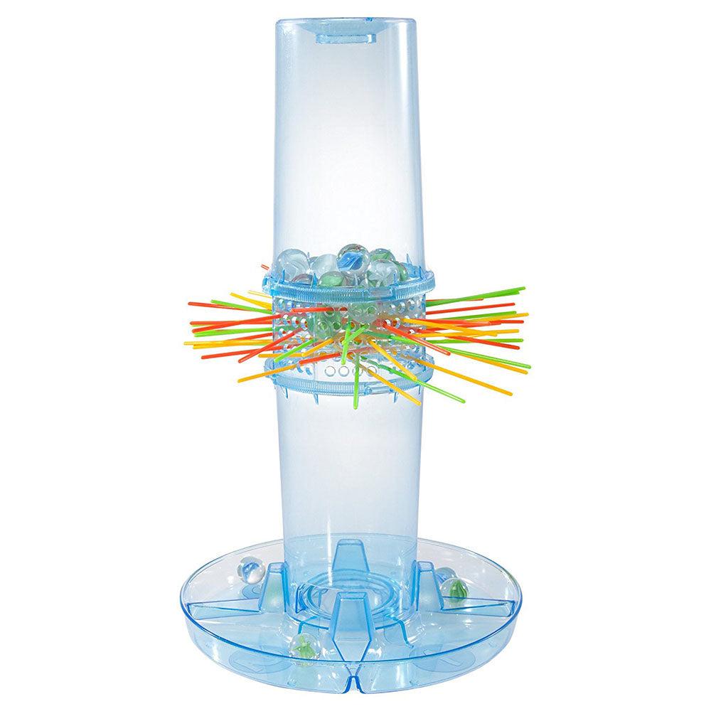 In this game, remove the sticks without dropping the marbles! Assemble the transparent tube, choose a tray, then carefully remove the sticks. The aim? Keep as many marbles in place as possible. Have fun testing your dexterity and calm to avoid the big "Ker Plunk"!