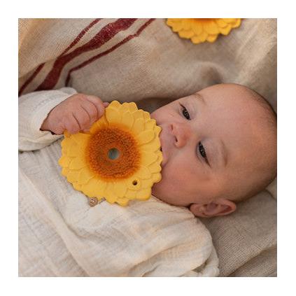 Sun the Sunflower is a teething, bath and sensory toy for baby. Sun le Tournesol will delight and stimulate baby's senses thanks to its central hole in the flower disc. They'll be able to interact with it during bath time and discover new textures with their fingers!