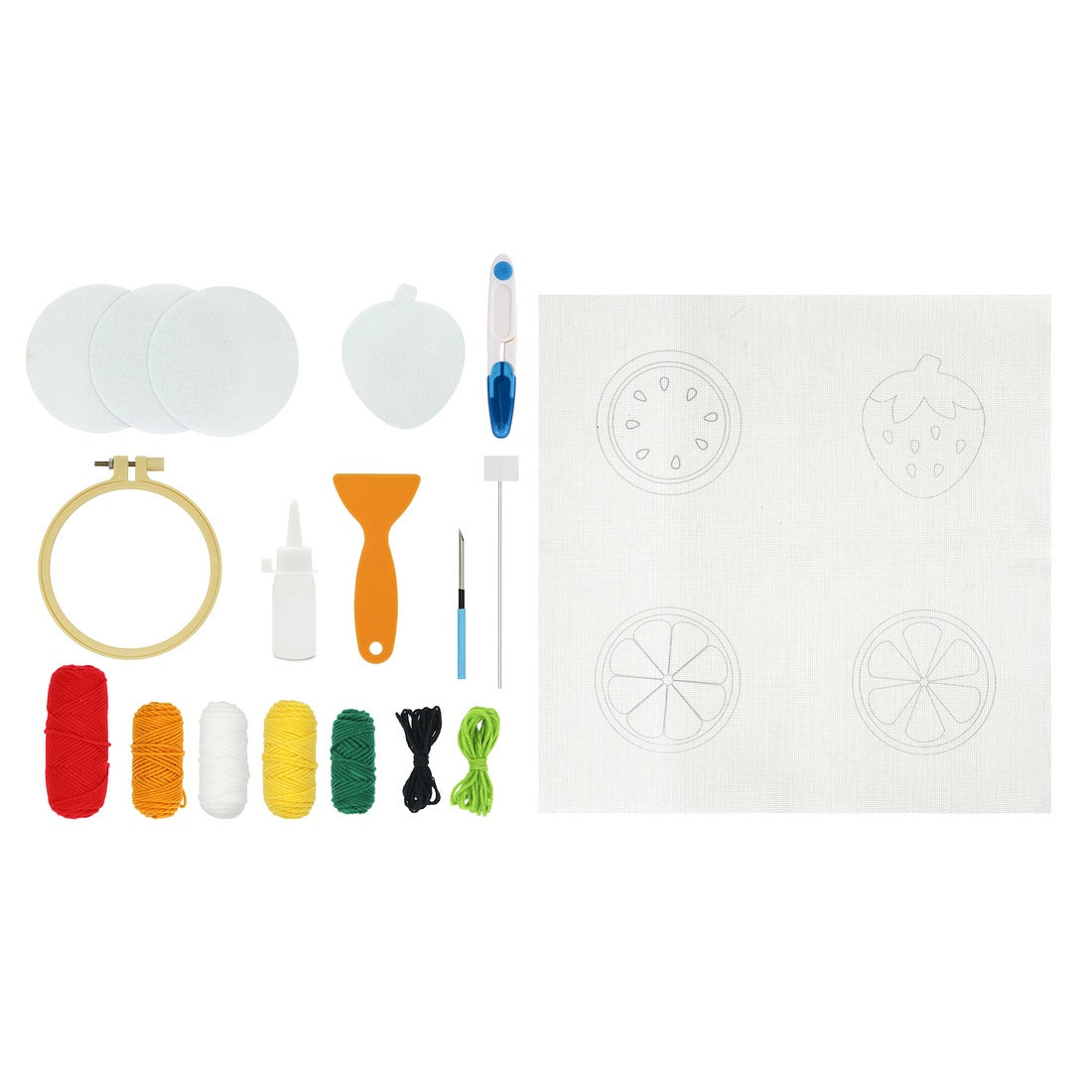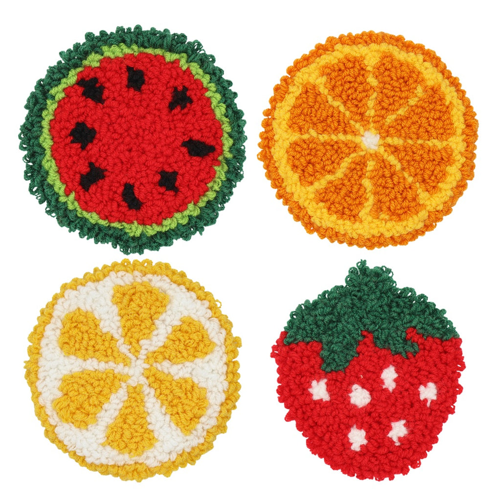 Make four colorful, fruity coasters (orange, lemon, strawberry, watermelon) with this fun punch needle kit. All elements are included, including felt and glue for finishing.