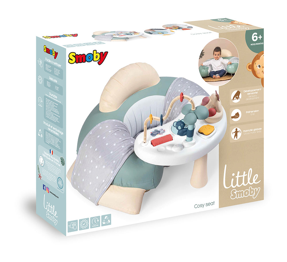 The Little Smoby Cosy Seat is ideal for babies just starting to sit up. This inflatable seat features fabric-covered armrests.