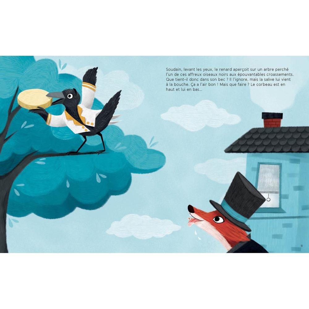 A collection of ten illustrated fables by Jean de La Fontaine: Le corbeau et le renard (The Raven and the Fox), La laitière et le pot au lait (The Milkmaid and the Potted Milk), Le chêne et le roseau (The Oak and the Reed), Le loup et l'agneau (The Wolf and the Lamb) and Le renard et la cigogne (The Fox and the Stork).