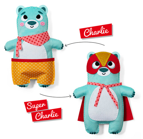 The Couz'in family expands into a maxi version! Discover Charlie the bear, a new sewing comforter measuring around 32cm in height.