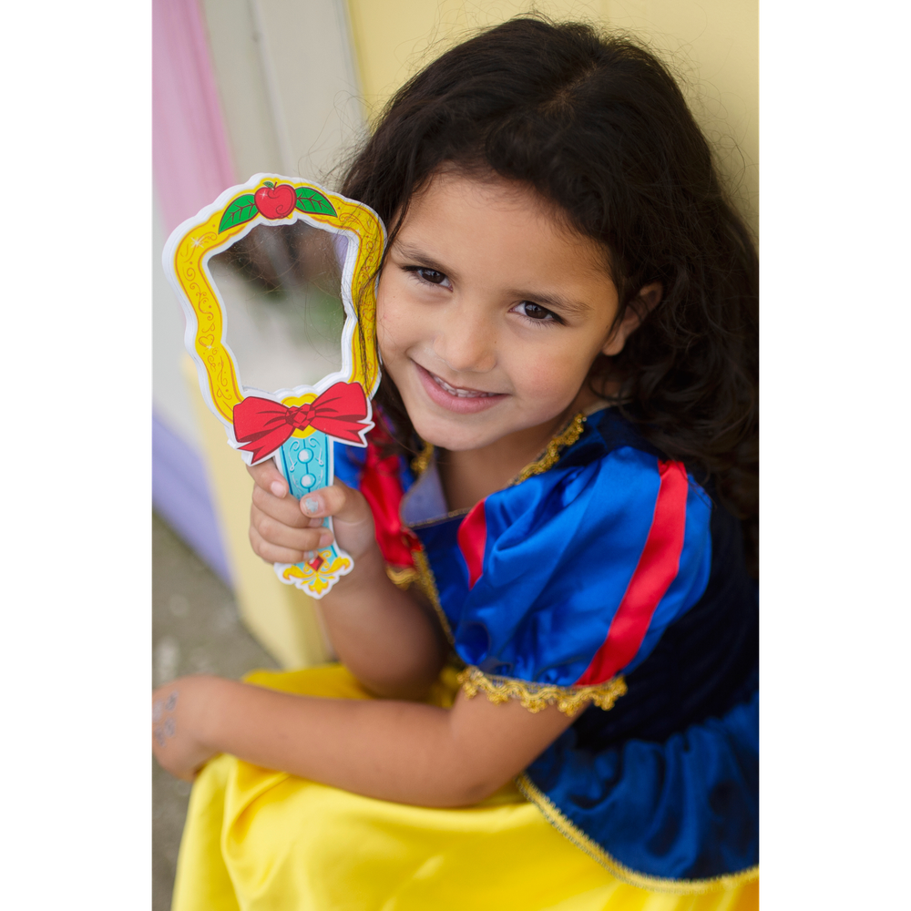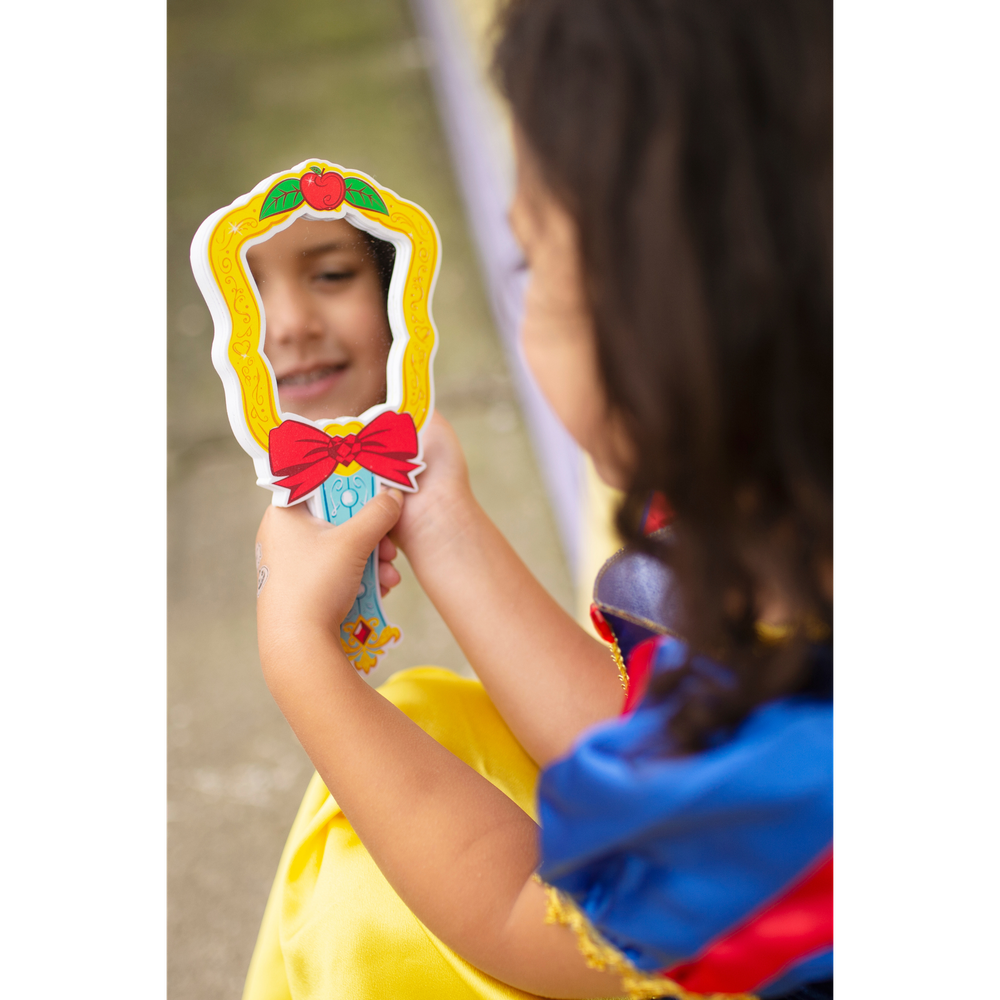 Our EVA foam mirrors are designed for little hands. This printed mirror is just as elegant as our Snow White dresses! Available in yellow, red and blue, it'll turn you into a princess! The mirrors are reflective and feature a child-safe plastic insert.