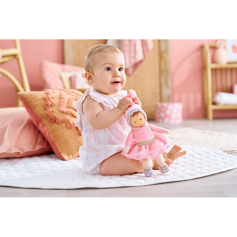 Perfect for accompanying baby everywhere, Miss Ballerine Rose grenadine is the little doll that will never be forgotten. She's perfectly sized (25 cm high) for little hands to grasp and hold by her stocking, hat, arms, legs and even her dress. She's made from an ultra-soft fabric that makes her very cuddly. Her soft, realistic vinyl face charms and comforts baby, and is delicately scented with Corolle signature vanilla.