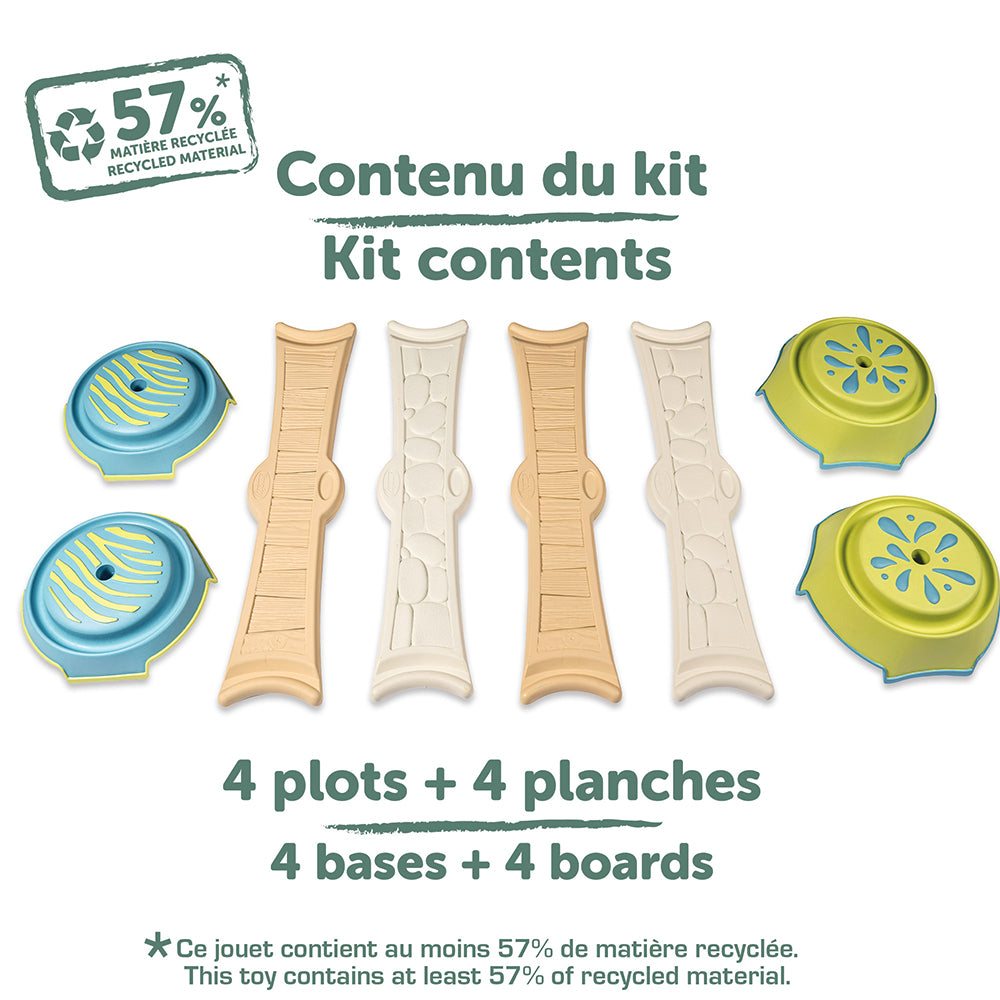 Comprising 4 studs and 4 boards, the course is perfectly modular and intuitive. It lets you assemble the elements as you wish, and promises endless configurations!