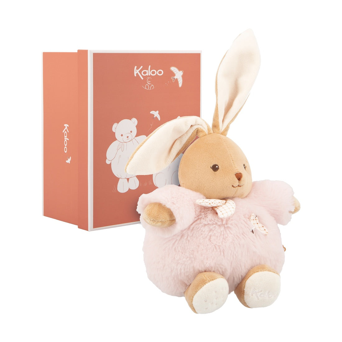 Soft and adorable, this little 17 cm pink bunny is the perfect companion for babies from birth. Easy to grasp by the ears and arms, it offers soft cuddles thanks to its ultra-soft belly. Adorned with a swallow, a gingham pattern and delicate ribbons, this timeless bunny charms with its refined style and endearing face.