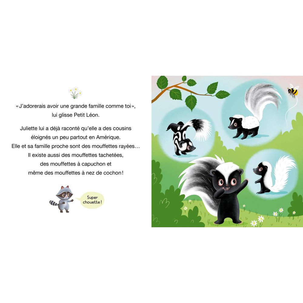Little Léon is a gentle raccoon. On this fine late afternoon, he sets out to find Juliette the skunk. His new friend is very shy, so she's hard to find... but Petit Léon knows where to look to invite her to his birthday party.