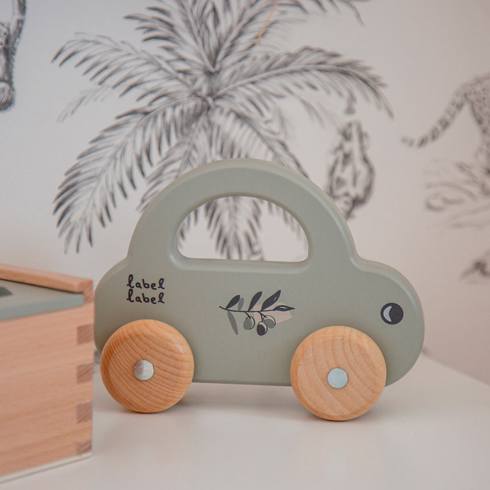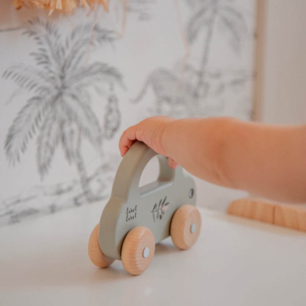 This wooden car is easy to grip thanks to its practical handle. Its simple design and soft colors, combined with natural wooden wheels, encourage your little one's motor development. Give him a toy that stimulates his imagination while elegantly embellishing his room.