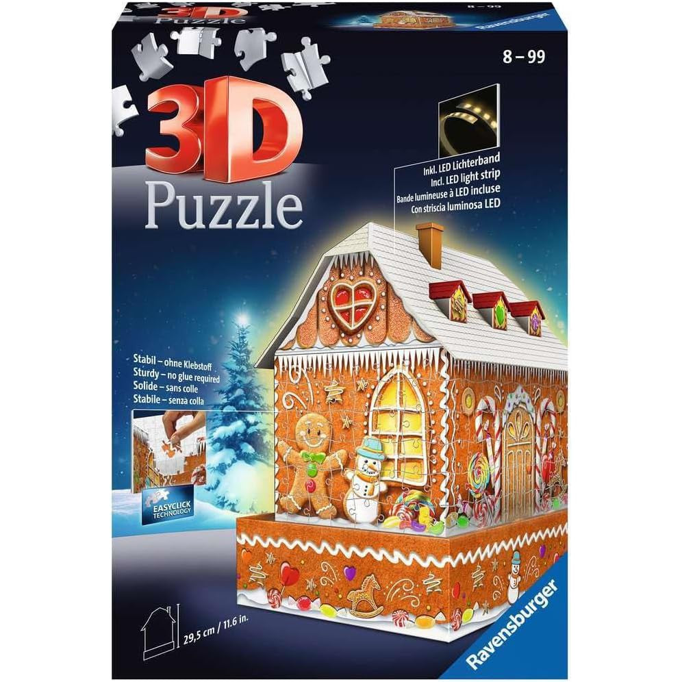 Treat yourself to a sweet, soothing treat by creating our adorable 3D "Gingerbread House" puzzle, complete with warm, zero-calorie LED lights!