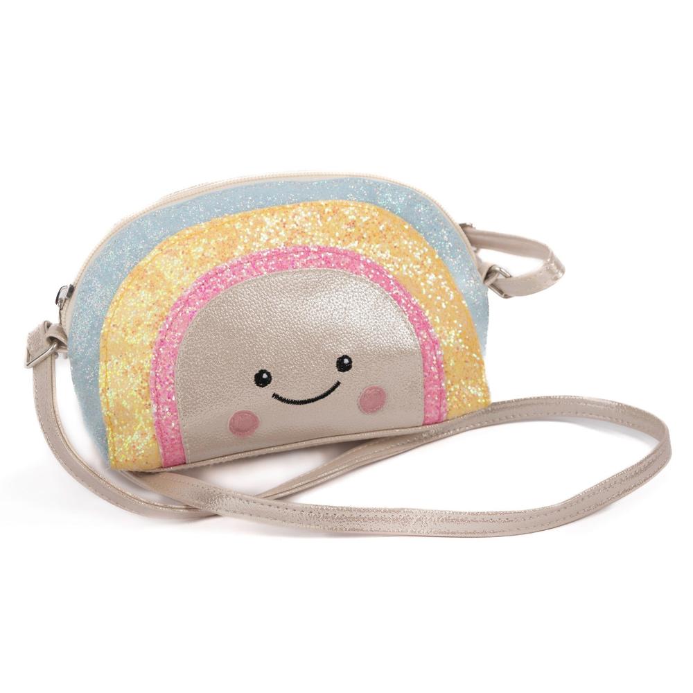 Bright rainbow colors and sparkling embellishments make this handbag a unique accessory that's sure to put a smile on every child's face. It has a spacious interior to store their treasures and a secure zipper to keep everything securely in place.