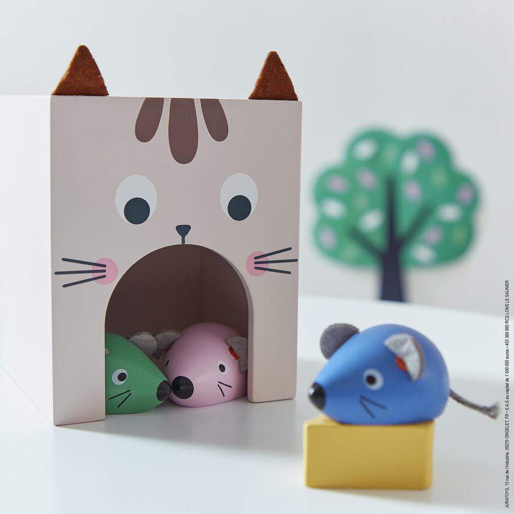 Where have the little mice gone? To the right? To the left? Accompany your child through the great story of friendship between a cat and his 3 companions. This independent or duo workshop will help your child learn to find their bearings in space and develop their vocabulary while having fun.