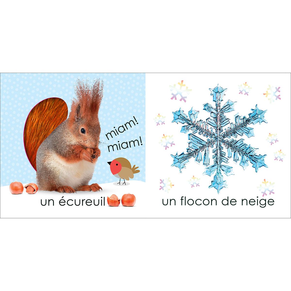 The format of Touche à tout : L'hiver is perfect for the hands of toddlers, who will love turning the pages themselves, filled with brightly colored illustrations and photographs. Toddlers can develop their sense of observation and get their first taste of reading. The book's textured areas maintain interest and help them acquire additional vocabulary.