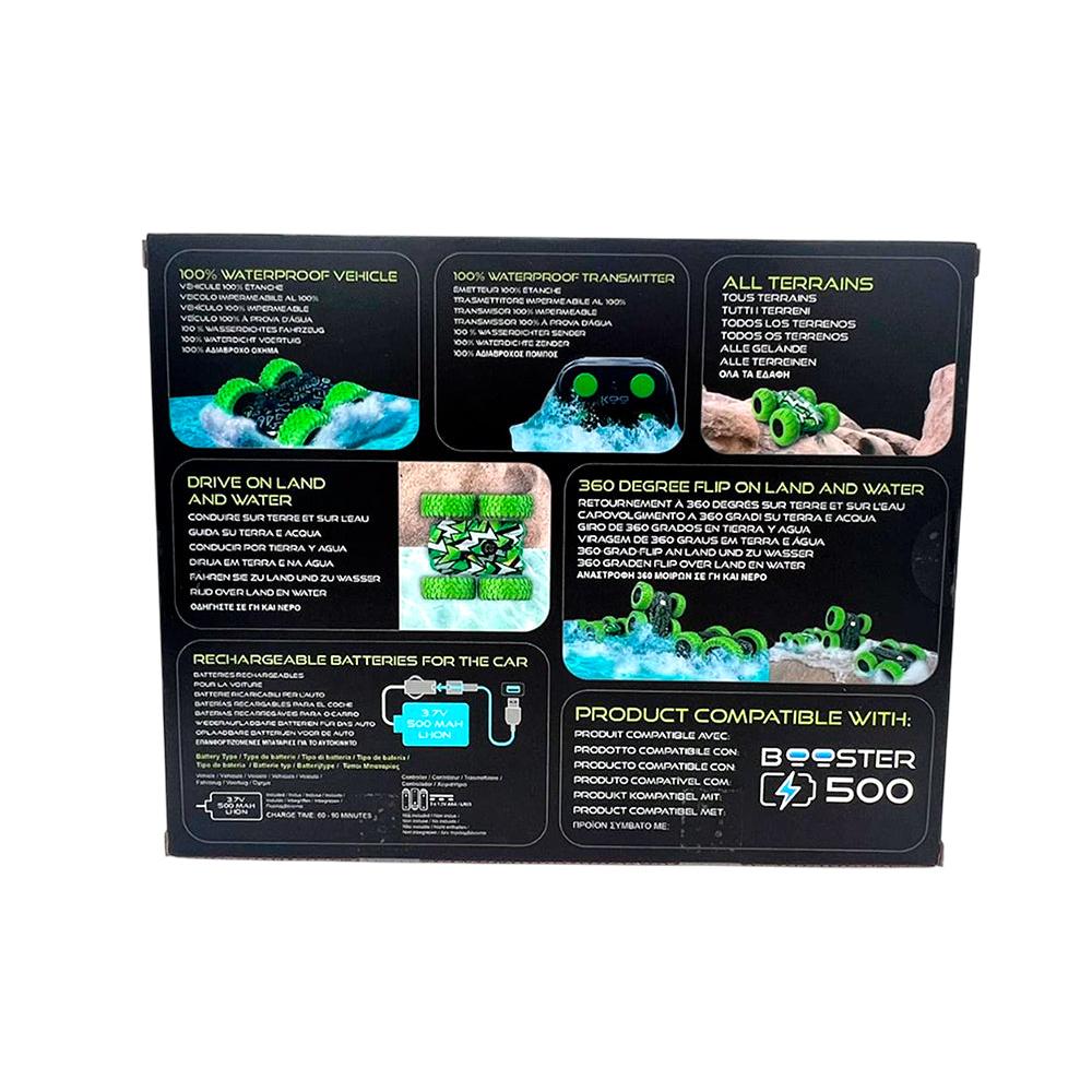 The entire vehicle is fully waterproof, allowing a smooth transition between land and water. Optimized for driving on land, swimming in water and handling wet surfaces. Capable of performing stunts, flipping in both directions, on land and in the water.