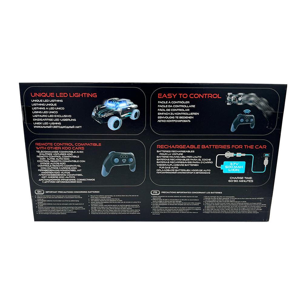The KOO stick 2.4 Ghz controller is universal, allowing you to drive all KOO cars. You can record sequences from the car and replay them on command with the simple use of your remote control.